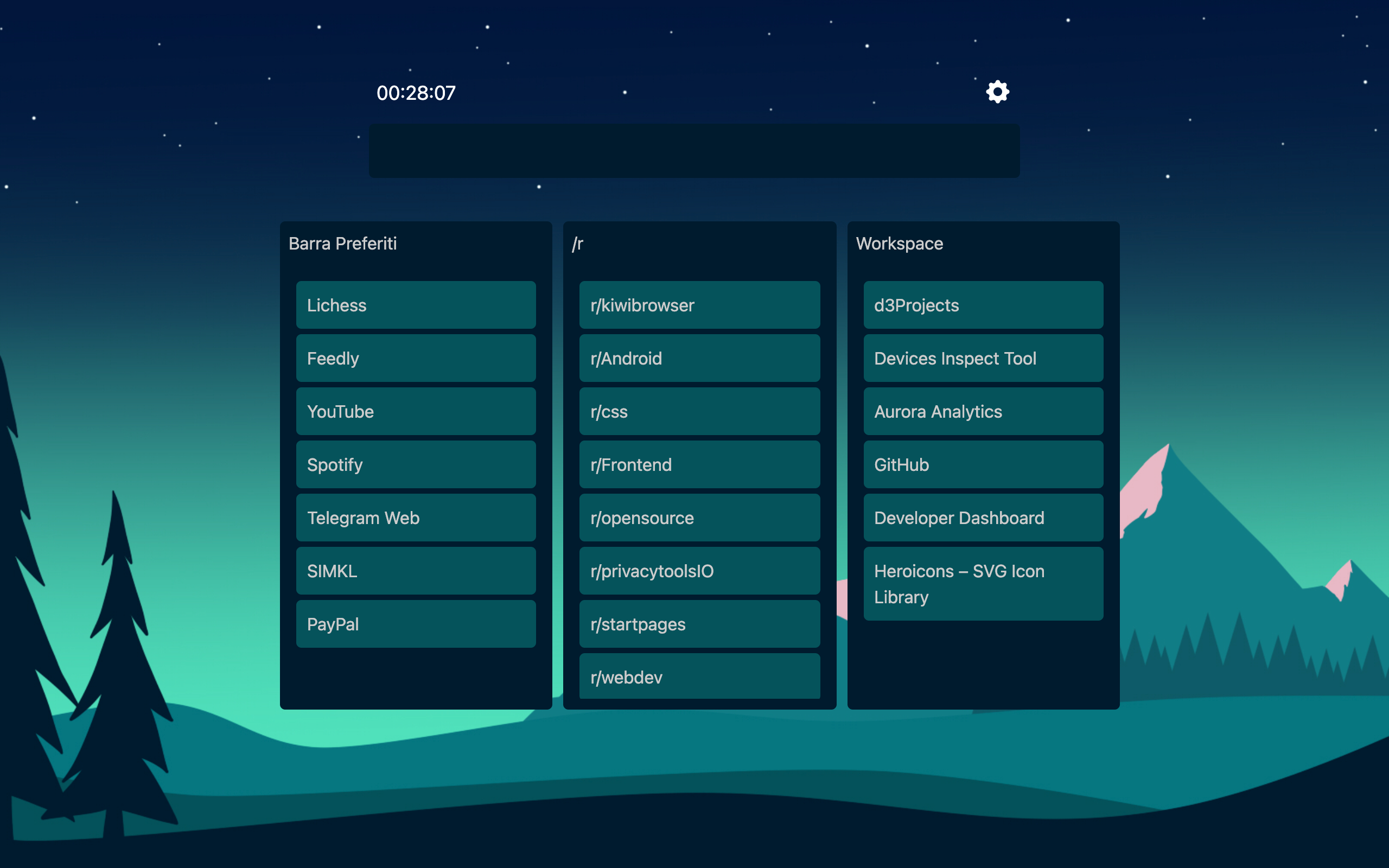 Kanban style homepage with your bookmarks and powerful search
